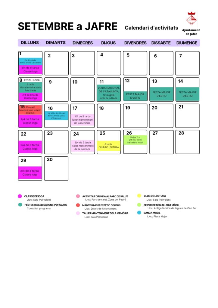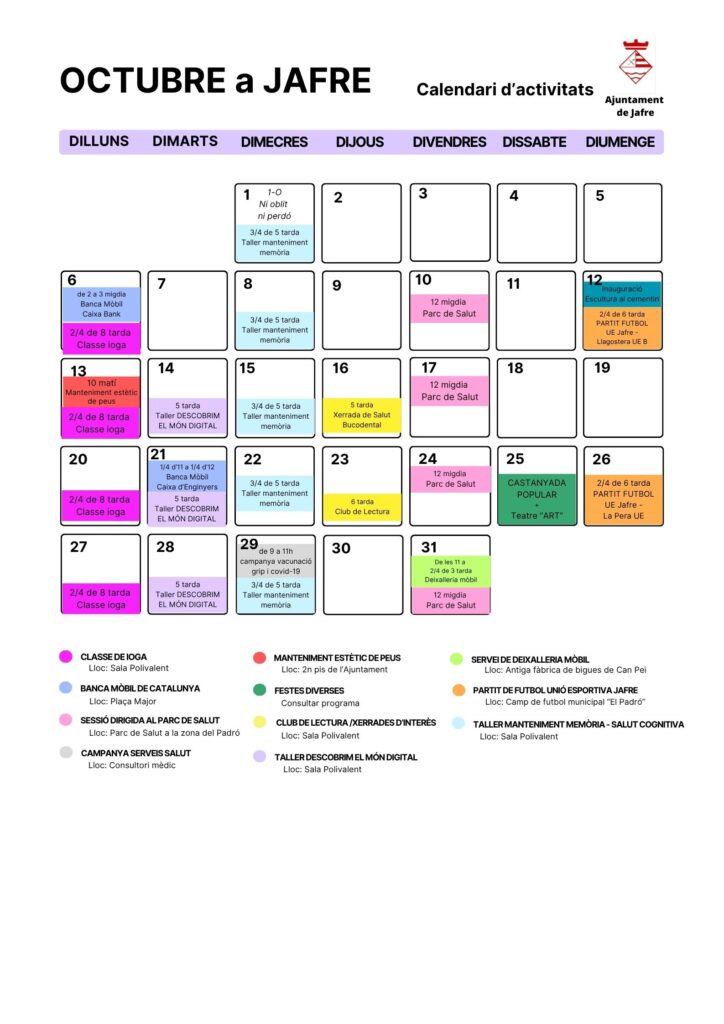 Us oferim un recull d’activitats organitzades per l’ajuntament i/o que tenen lloc a espais municipals, per a tenir-ne el calendari a l’abast.